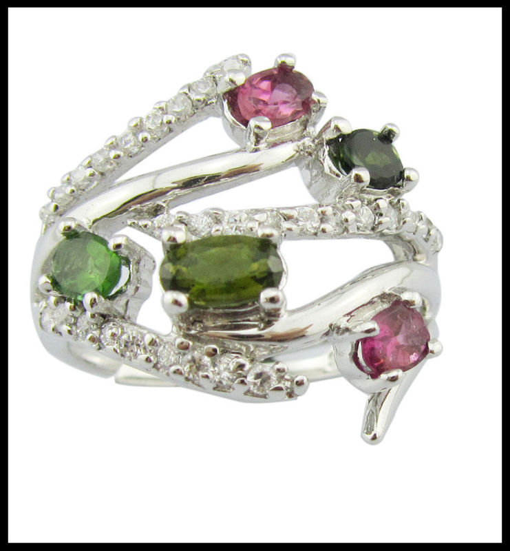 Modieuze edelsteenringen in 925 zilver voor dames, casual party wear, ovaal, gerhodineerd, sieraden, toermalijn